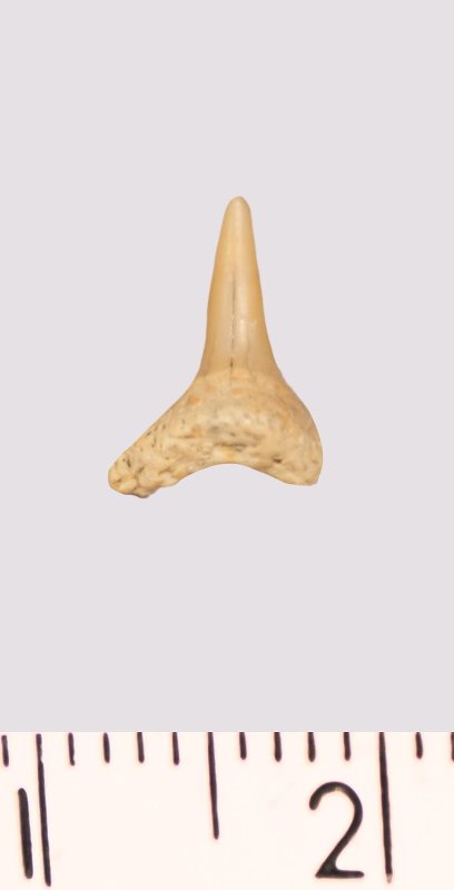Зуб. Акула. Odontaspis macrorhiza (Cope) Leriche, 1902. Классификация: Хордовые Chordata, Позвоночные Vertebrata, Хрящевые рыбы Chondrichthyes, Пластиножаберные Elasmobranchii