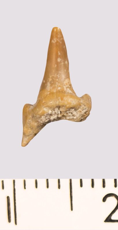 Зуб. Акула. Odontaspis venusta (Leriche, 1929). Классификация: Хордовые Chordata, Позвоночные Vertebrata, Хрящевые рыбы Chondrichthyes, Пластиножаберные Elasmobranchii