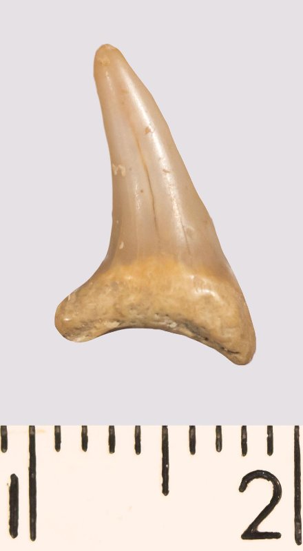 Зуб. Акула. Odontaspis venusta (Leriche, 1929). Классификация: Хордовые Chordata, Позвоночные Vertebrata, Хрящевые рыбы Chondrichthyes, Пластиножаберные Elasmobranchii