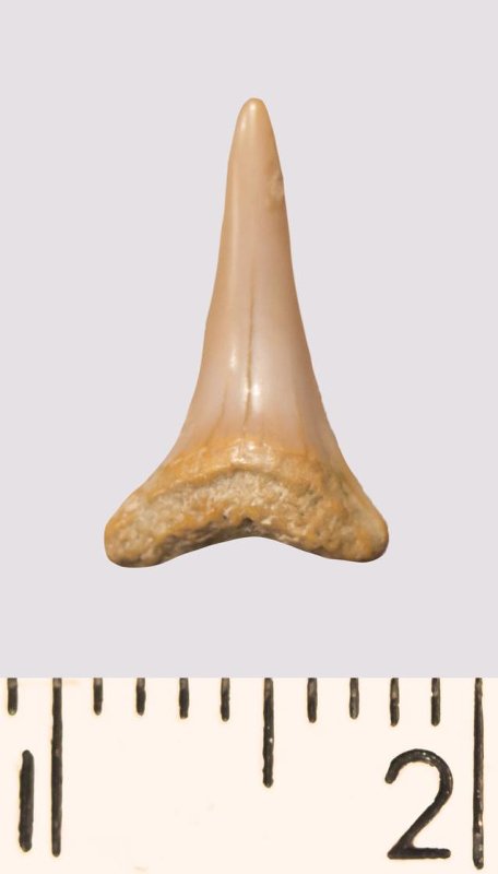 Зуб. Акула. Odontaspis venusta (Leriche, 1929). Классификация: Хордовые Chordata, Позвоночные Vertebrata, Хрящевые рыбы Chondrichthyes, Пластиножаберные Elasmobranchii