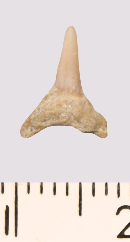 Зуб. Акула. Odontaspis venusta (Leriche, 1929). Классификация: Хордовые Chordata, Позвоночные Vertebrata, Хрящевые рыбы Chondrichthyes, Пластиножаберные Elasmobranchii