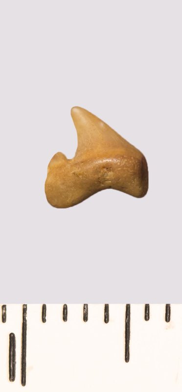 Зуб. Акула. Odontaspis macrorhiza (Cope) Leriche, 1902. Классификация: Хордовые Chordata, Позвоночные Vertebrata, Хрящевые рыбы Chondrichthyes, Пластиножаберные Elasmobranchii