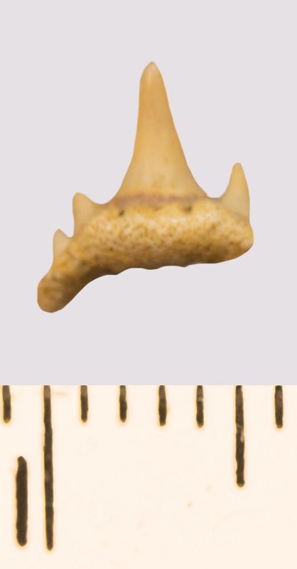 Зуб. Акула. Synechodus sp. Классификация: Хордовые Chordata, Позвоночные Vertebrata, Хрящевые рыбы Chondrichthyes, Пластиножаберные Elasmobranchii