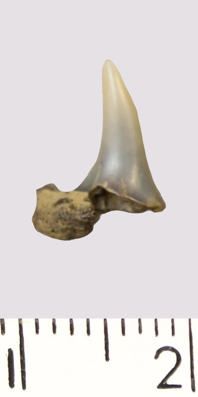 Зуб. Акула. Odontaspis venusta (Leriche, 1929). Классификация: Хордовые Chordata, Позвоночные Vertebrata, Хрящевые рыбы Chondrichthyes, Пластиножаберные Elasmobranchii