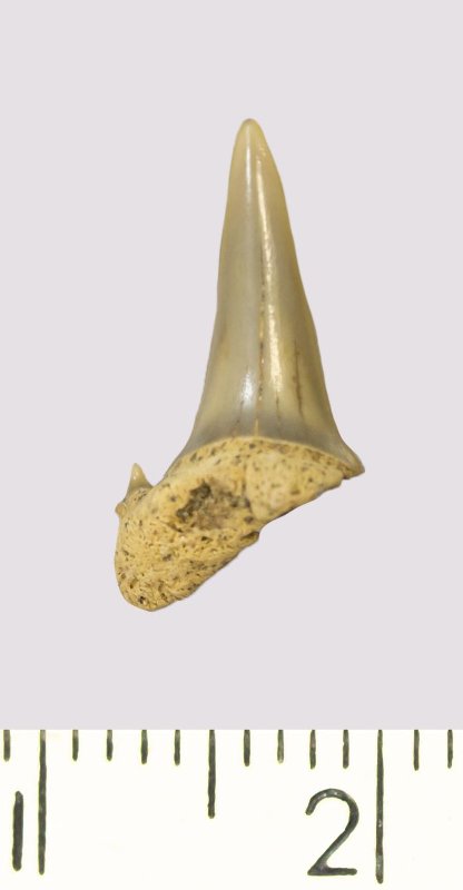 Зуб. Акула. Odontaspis venusta (Leriche, 1929). Классификация: Хордовые Chordata, Позвоночные Vertebrata, Хрящевые рыбы Chondrichthyes, Пластиножаберные Elasmobranchii