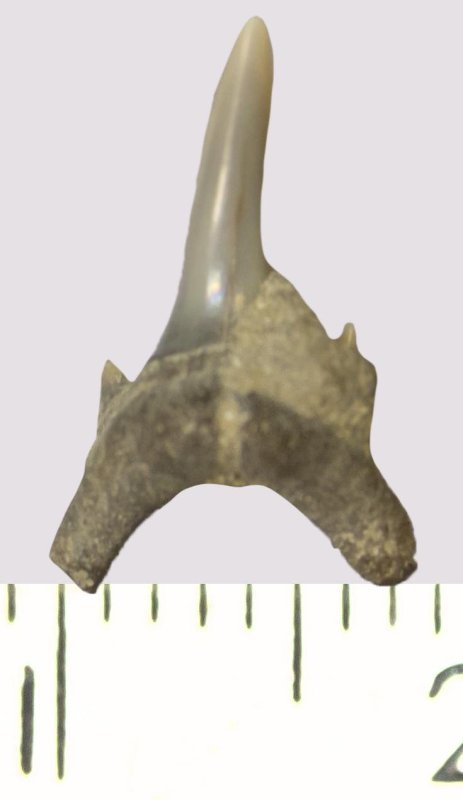 Зуб. Акула. Odontaspis venusta (Leriche, 1929). Классификация: Хордовые Chordata, Позвоночные Vertebrata, Хрящевые рыбы Chondrichthyes, Пластиножаберные Elasmobranchii