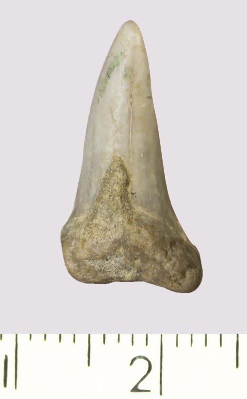Зуб (фрагмент). Акула. Lamniformes gen. et sp. indet. Классификация: Хордовые Chordata, Позвоночные Vertebrata, Хрящевые рыбы Chondrichthyes, Пластиножаберные Elasmobranchii