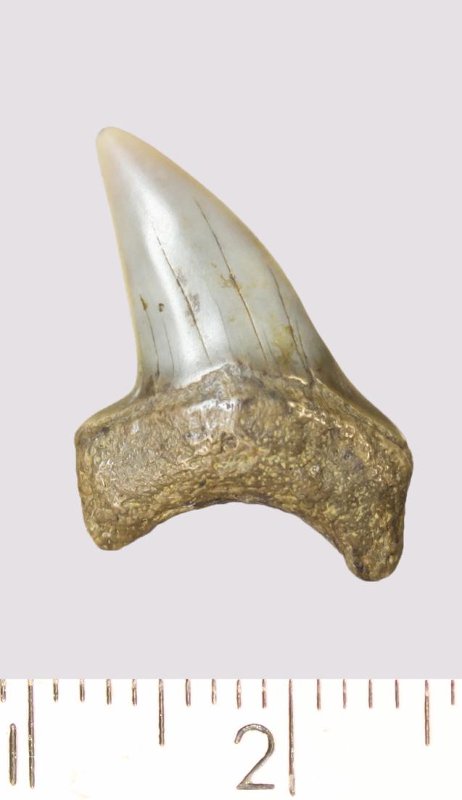 Зуб. Акула. Macrorhizodus acuminatus. Классификация: Хордовые Chordata, Позвоночные Vertebrata, Хрящевые рыбы Chondrichthyes, Пластиножаберные Elasmobranchii