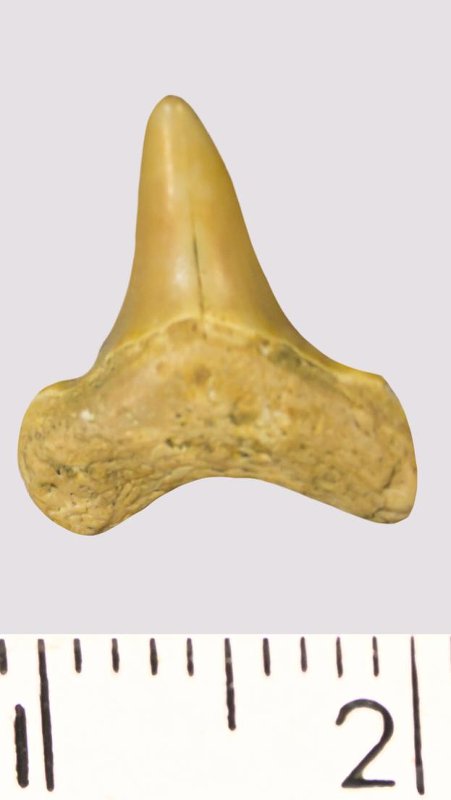 Зуб. Акула. Odontaspis macrorhiza (Cope) Leriche, 1902. Классификация: Хордовые Chordata, Позвоночные Vertebrata, Хрящевые рыбы Chondrichthyes, Пластиножаберные Elasmobranchii