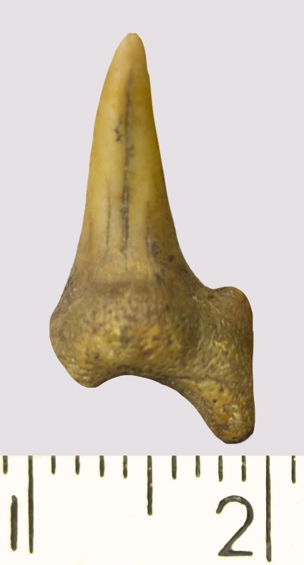 Зуб. Акула. Odontaspis macrorhiza (Cope) Leriche, 1902. Классификация: Хордовые Chordata, Позвоночные Vertebrata, Хрящевые рыбы Chondrichthyes, Пластиножаберные Elasmobranchii