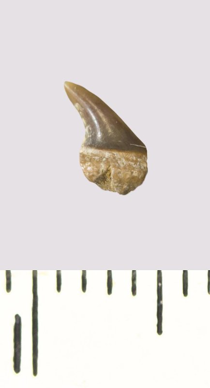 Зуб (фрагмент). Акула. Eostriatolamia sp. Классификация: Хордовые Chordata, Позвоночные Vertebrata, Хрящевые рыбы Chondrichthyes, Пластиножаберные Elasmobranchii
