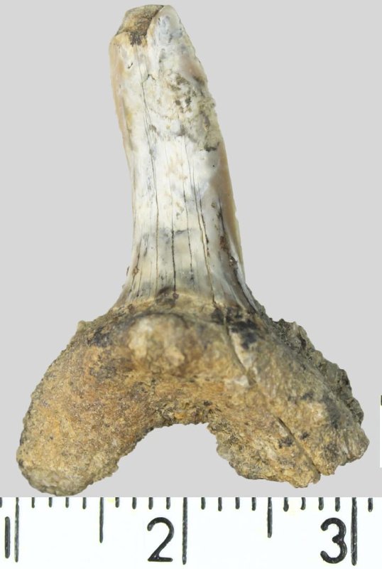 Зуб. Акула. Hispidaspis sp. Классификация: Хордовые Chordata, Позвоночные Vertebrata, Хрящевые рыбы Chondrichthyes, Пластиножаберные Elasmobranchii
