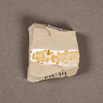Отпечаток множества ювенильных особей мечехвостов самых ранних стадий развития. мечехвоста. Панцирь отпечатался с верхней стороны. Порода представлена мергелем светло-бежевым.