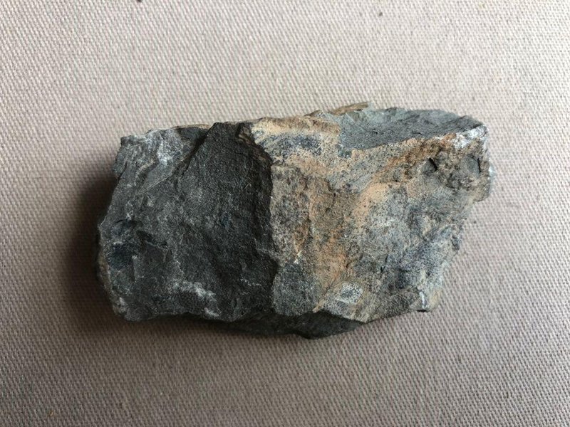 Несколько пластин на субстрате. Покрыты мелкобугорчатой скульптурой. Субстрат представлен очень плотным мелкозернистым песчаником темно-серого цвета, ржаво-рыжего цвета на выветрелой поверхности.
