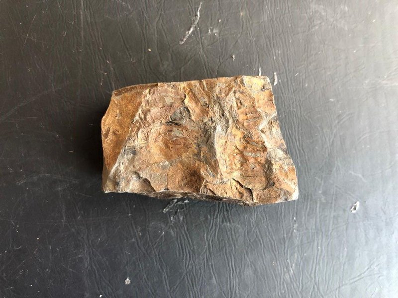 На породе отпечаток спорофилла. Порода представлена темно-серым алевролитом.