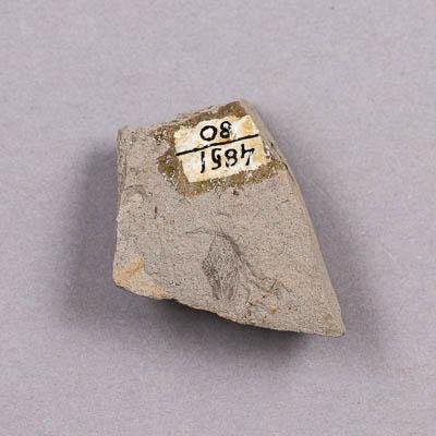 Отпечаток отдельного перышка. Сохранилась фитолейма, которая придает отпечатку черный цвет. Порода представлена аргиллитом кремового цвета.