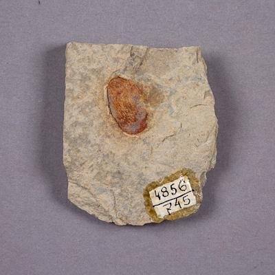 ПАРАТИП. Изолированное семя на породе. Гинкговое. Ovalocarpus ovoides Naugolnykh, 2018. Классификация: Растения Plantae, Голосемянные Gymnospermae, Гингковые Ginkgoopsida, Гингковые Ginkgoales, Cheirocladaceae, Гинкговое Ovalocarpus ovoides Naugolnykh, 2018