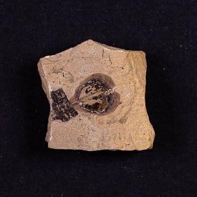 Изолированное семя на породе. Кордаитовое голосеменное растение. Samaropsis tuberculata Dombrovskaya, 1961. Классификация: Растения Plantae, Голосемянные Gymnospermae, Хвойные Pinopsida, Кордаитовые Cordaitales, Кордаитовое голосеменное растение Samaropsis tuberculata Dombrovskaya, 1961