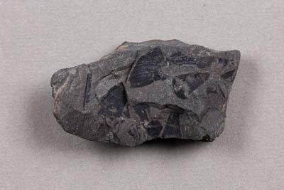 Фрагменты листовых пластинок на субстрате. Жилкование параллельное. За счет частично сохранившейся фитолеймы остатки листьев выделяются черным цветом на общем фоне. Порода представлена серым глинистым аргиллитом.