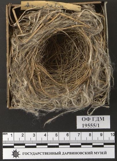 Гнездо. Садовая камышевка. Acrocephalus dumetorum Blyth,1849. Классификация: Хордовые Chordata, Позвоночные Vertebrata, Птицы Aves, Воробьинообразные Passeriformes, Славковые Sylviidae, Садовая камышевка Acrocephalus dumetorum Blyth,1849