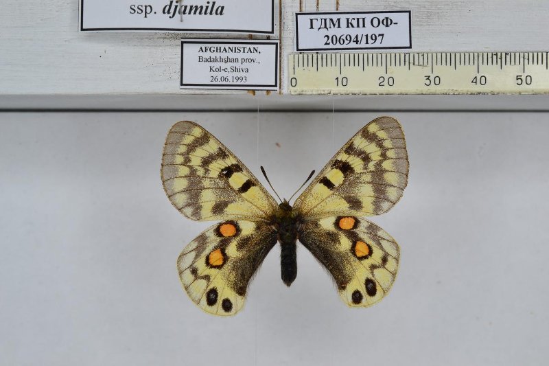 Бабочка. Parnassius (Koramius) cardinal Grum-Grshimailo, 1887.