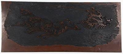 Доска из комплекта (7 досок) для создания цветной линогравюры. Горизонтальный формат. Оленья упряжка (погонщик на нартах и три оленя). К линогравюре «Молния» (оф-10875).