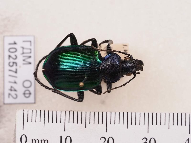Сухое насекомое. Жук жужелица. Calosoma sycophanta (Linnaeus, 1758). Классификация: Членистоногие Arthropoda, Насекомые Insecta, Жуки Coleoptera, Жужелицы Carabidae