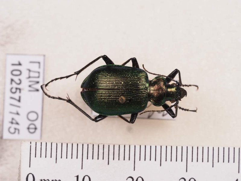 Сухое насекомое. Жук жужелица. Calosoma inquisitor (Linnaeus, 1758). Классификация: Членистоногие Arthropoda, Насекомые Insecta, Жуки Coleoptera, Жужелицы Carabidae