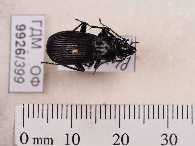 Сухое насекомое. Жук птеростих. Pterostichus. Классификация: Членистоногие Arthropoda, Насекомые Insecta, Жуки Coleoptera, Жужелицы Carabidae, Carabus, Жук C. coriaceus Linne, 1758