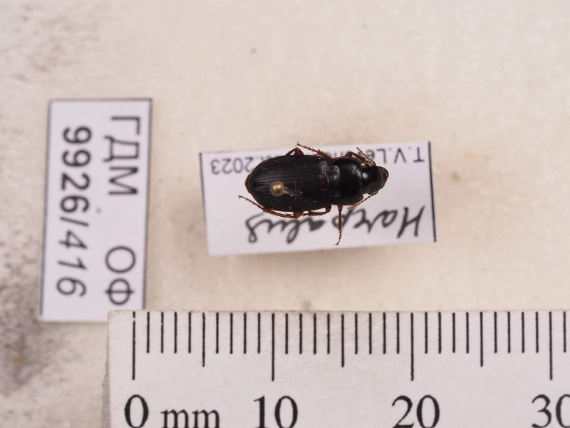 Сухое насекомое. Жук птеростих. Harpalus. Классификация: Членистоногие Arthropoda, Насекомые Insecta, Жуки Coleoptera, Жужелицы Carabidae, Carabus, Жук C. coriaceus Linne, 1758
