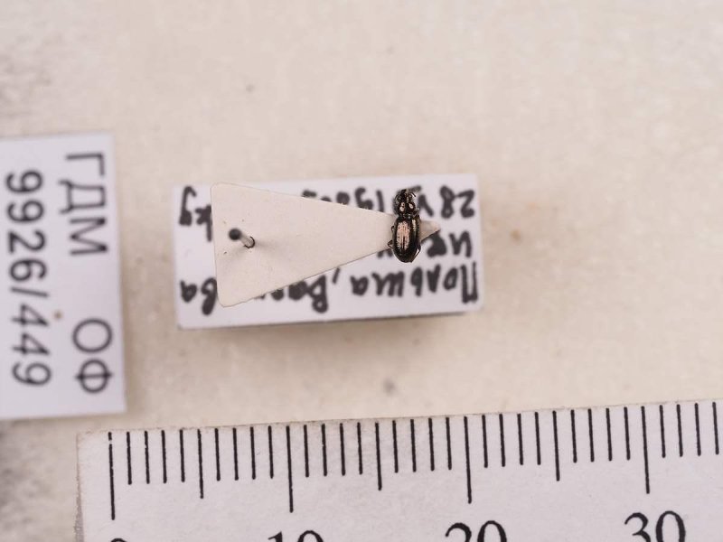 Сухое насекомое. Жук бегунчик. Bembidion. Классификация: Членистоногие Arthropoda, Насекомые Insecta, Жуки Coleoptera, Жужелицы Carabidae, Carabus, Жук C. coriaceus Linne, 1758