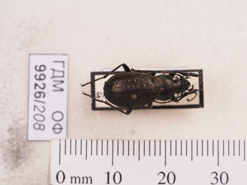 Сухое насекомое. Жук жужелица. Carabus sylvestris Panzer, 1793. Классификация: Членистоногие Arthropoda, Насекомые Insecta, Жуки Coleoptera, Жужелицы Carabidae, Carabus, Жук C. coriaceus Linne, 1758