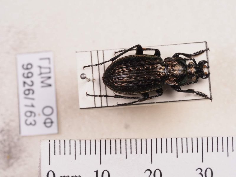 Сухое насекомое. Жук жужелица. Carabus italicus Dejean, 1826. Классификация: Членистоногие Arthropoda, Насекомые Insecta, Жуки Coleoptera, Жужелицы Carabidae, Carabus, Жук C. coriaceus Linne, 1758