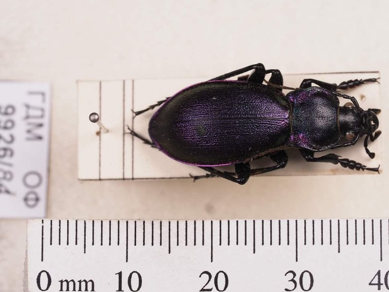 Сухое насекомое. Жук жужелица. Carabus violaceus Linnaeus, 1758. Классификация: Членистоногие Arthropoda, Насекомые Insecta, Жуки Coleoptera, Жужелицы Carabidae, Carabus, Жук C. coriaceus Linne, 1758