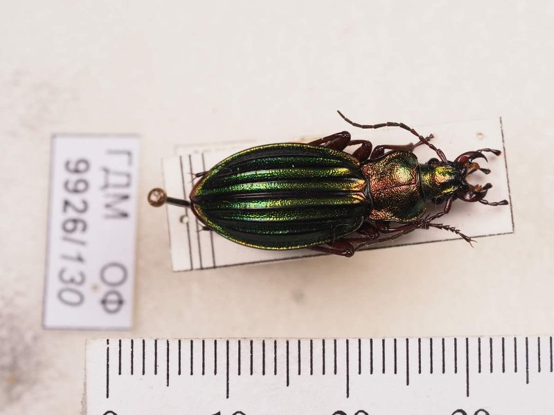 Сухое насекомое. Жук жужелица. Carabus auronitens Fabricius, 1792. Классификация: Членистоногие Arthropoda, Насекомые Insecta, Жуки Coleoptera, Жужелицы Carabidae, Carabus, Жук C. coriaceus Linne, 1758