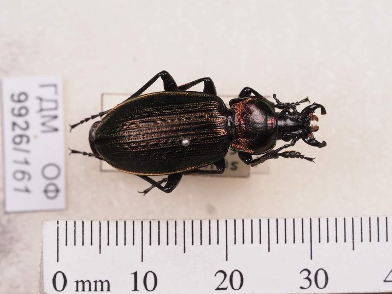 Сухое насекомое. Жук жужелица. Carabus morbillosus Fabricius 1792. Классификация: Членистоногие Arthropoda, Насекомые Insecta, Жуки Coleoptera, Жужелицы Carabidae, Carabus, Жук C. coriaceus Linne, 1758