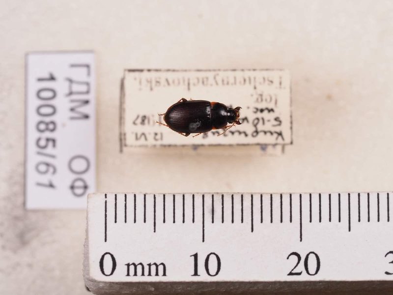 Сухое насекомое. Жук бегун. Harpalus amplicollis Menetries, 1848. Классификация: Членистоногие Arthropoda, Насекомые Insecta, Жуки Coleoptera, Жужелицы Carabidae