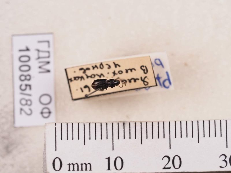Сухое насекомое. Жук птеростих. Pterostichus brevicornis (Kirby, 1837). Классификация: Членистоногие Arthropoda, Насекомые Insecta, Жуки Coleoptera, Жужелицы Carabidae