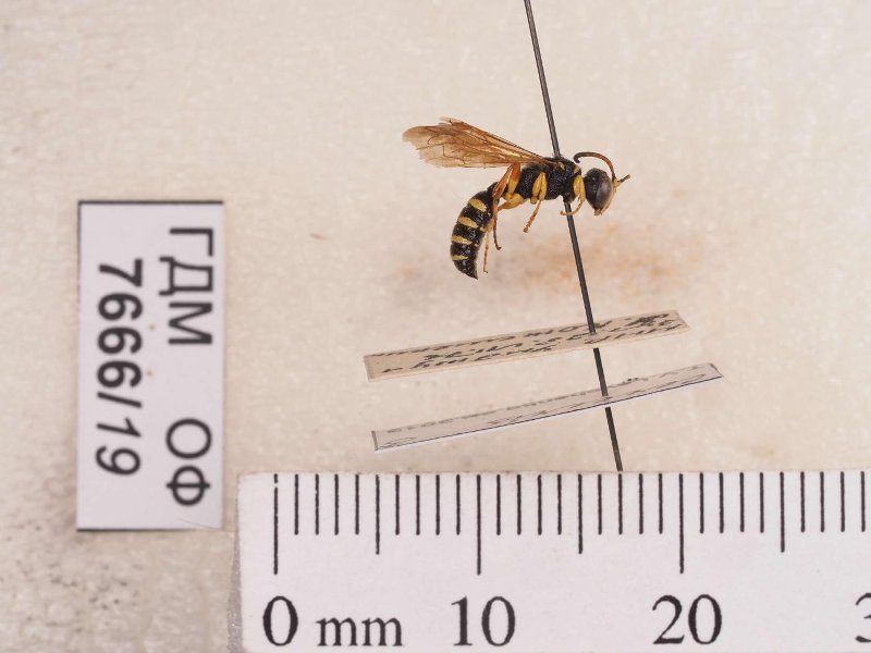 Сухое насекомое. Оса церцерис. Cerceris. Классификация: Членистоногие Arthropoda, Насекомые Insecta, Перепончатокрылые Hymenoptera, Осы песочные Crabronidae