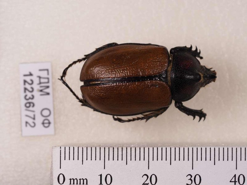 Сухое насекомое. Жук-носорог. Golofa pelagon Burmeister, 1847. Классификация: Членистоногие Arthropoda, Насекомые Insecta, Жуки Coleoptera, Пластинчатоусые Scarabaeidae