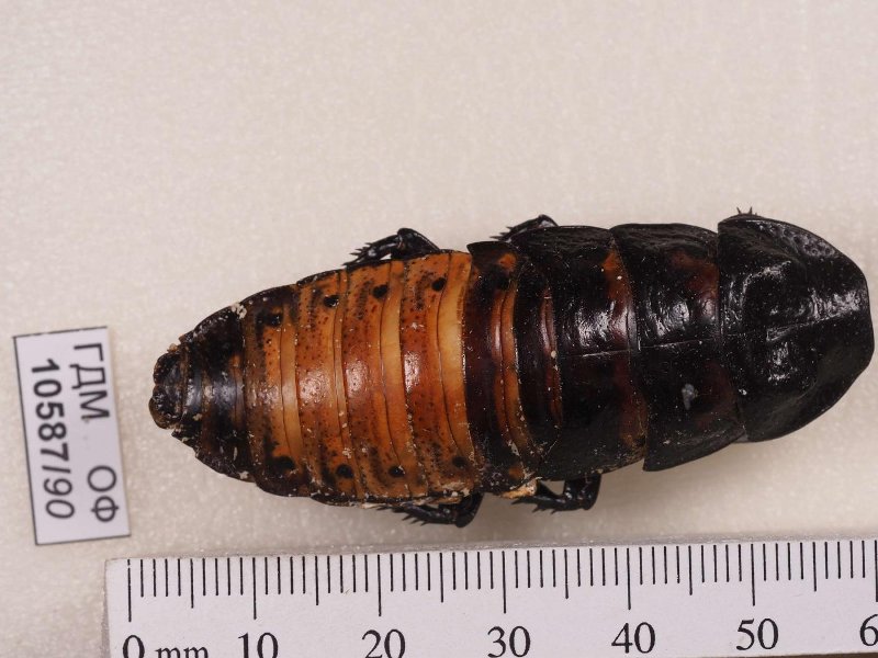 Сухое насекомое. Таракан шипящий мадагаскарский. Gromphadorhina portentosa. Классификация: Членистоногие Arthropoda, Насекомые Insecta, Тараканы Blattodea, Тараканы блабериды Blaberidae