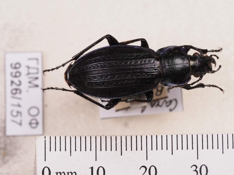 Сухое насекомое. Жук жужелица. Carabus monilis Fabricius, 1792. Классификация: Членистоногие Arthropoda, Насекомые Insecta, Жуки Coleoptera, Жужелицы Carabidae, Carabus, Жук C. coriaceus Linne, 1758