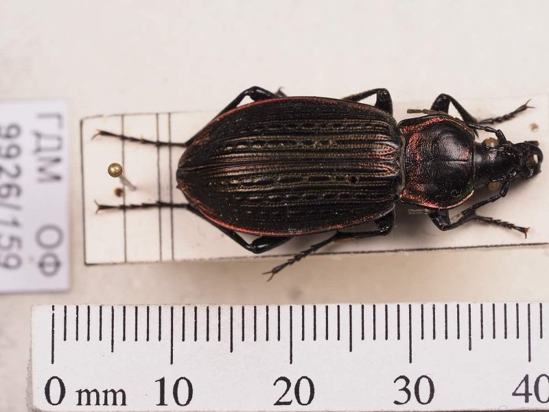 Сухое насекомое. Жук жужелица. Carabus morbillosus Fabricius 1792. Классификация: Членистоногие Arthropoda, Насекомые Insecta, Жуки Coleoptera, Жужелицы Carabidae, Carabus, Жук C. coriaceus Linne, 1758