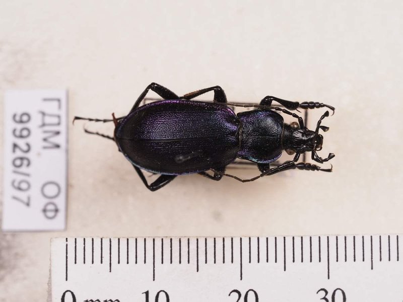 Сухое насекомое. Жук жужелица. Carabus violaceus Linnaeus, 1758. Классификация: Членистоногие Arthropoda, Насекомые Insecta, Жуки Coleoptera, Жужелицы Carabidae, Carabus, Жук C. coriaceus Linne, 1758