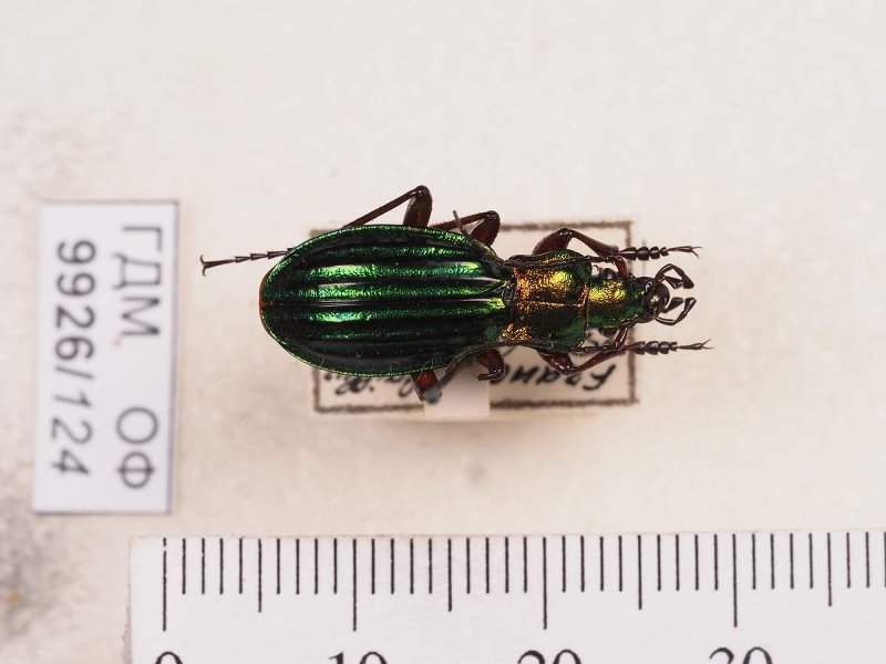 Сухое насекомое. Жук жужелица. Carabus auronitens Fabricius, 1792. Классификация: Членистоногие Arthropoda, Насекомые Insecta, Жуки Coleoptera, Жужелицы Carabidae, Carabus, Жук C. coriaceus Linne, 1758