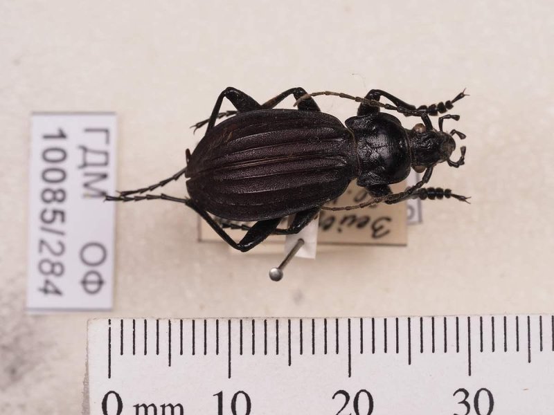 Сухое насекомое. Жук жужелица. Carabus canaliculatus Adams, 1812. Классификация: Членистоногие Arthropoda, Насекомые Insecta, Жуки Coleoptera, Жужелицы Carabidae