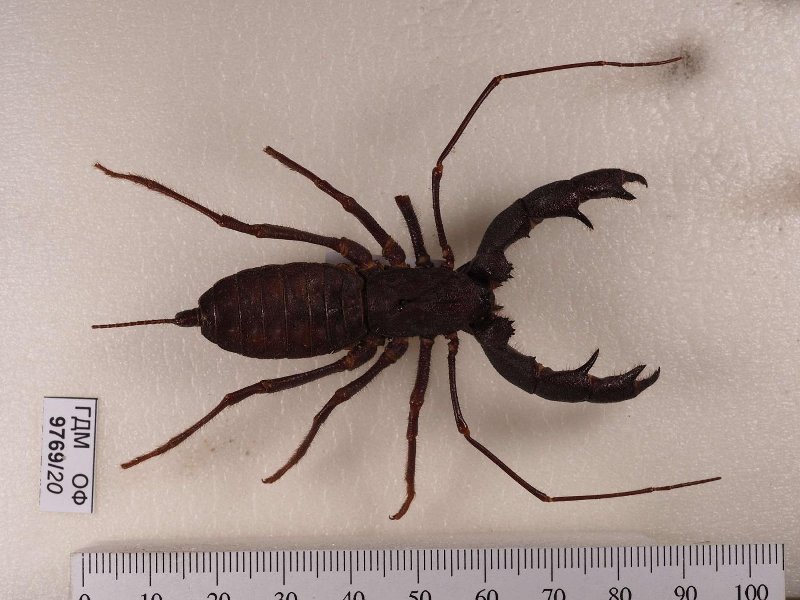 Сухой препарат. Телифон. Thelyphonida. Классификация: Членистоногие Arthropoda, Паукообразные (подтип Хелицеровые) Arachnida (subphylum Chelicerata), Телифоны Thelyphonida