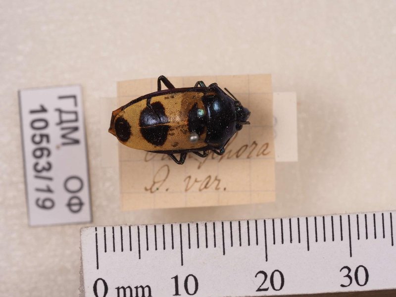 Сухое насекомое. Клоп-черепашка. Calliphara. Классификация: Членистоногие Arthropoda, Насекомые Insecta, Клопы Heteroptera, Клопы-черепашки Scutelleridae