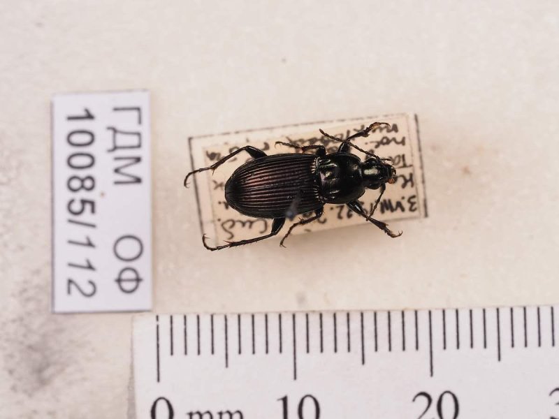 Сухое насекомое. Жук птеростих. Poecilus fortipes (Chaudoir, 1850). Классификация: Членистоногие Arthropoda, Насекомые Insecta, Жуки Coleoptera, Жужелицы Carabidae