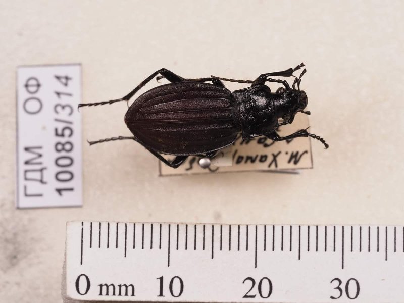 Сухое насекомое. Жук жужелица. Carabus canaliculatus Adams, 1812. Классификация: Членистоногие Arthropoda, Насекомые Insecta, Жуки Coleoptera, Жужелицы Carabidae